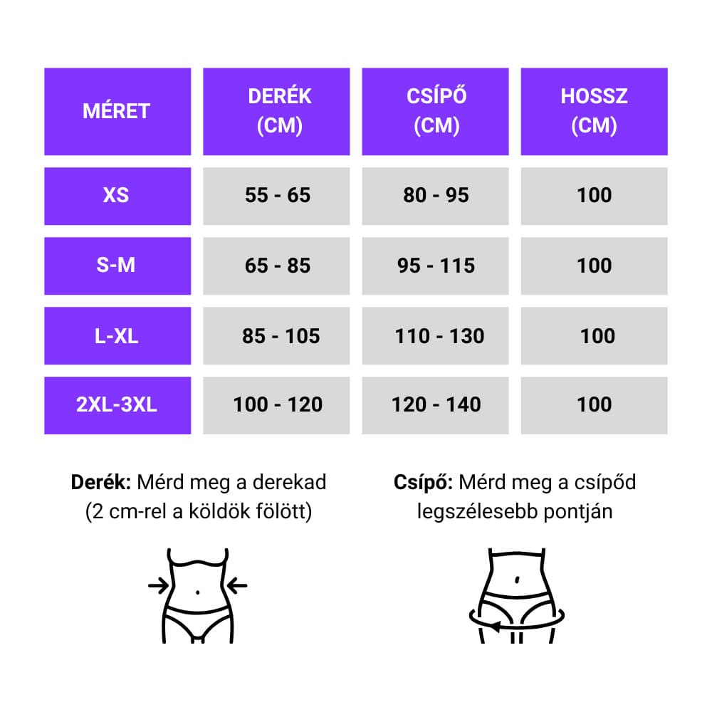 XS – Derék: 55–65 cm, Csípő: 80–95 cm